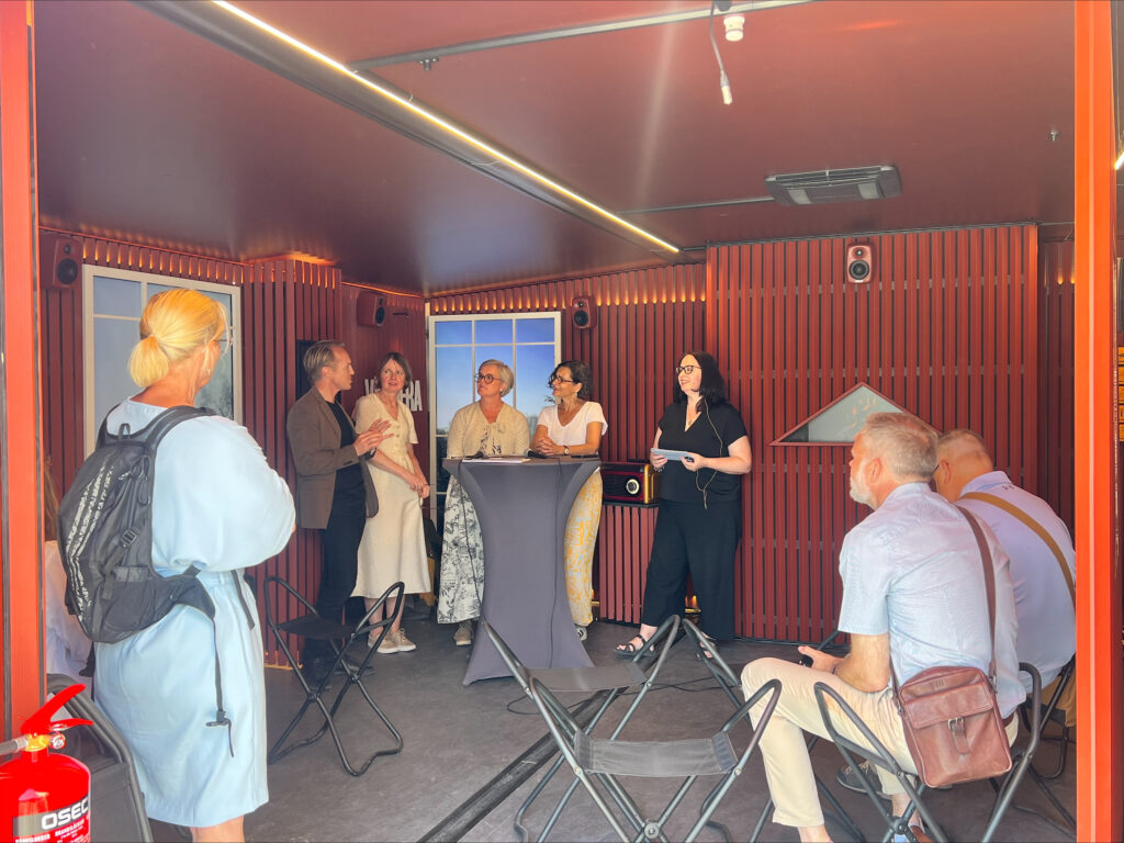 Utställningen, som är byggd i en container, hade en fin placering nere vid hamnen med Östersjön som fond. Ungefär 130 personer deltog i visning av utställningen och ungefär 800 personer kom förbi och pratade om projektet.